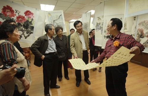 本网讯4月26日上午,院离退办主办的我院老教授冯希娥迎五一书画展在院离退休职工第一活动室举行,院党委副书记朱元利,陕西省原教育厅厅长刘炳奇、西安美术学院教授韩莉、宋晓峰,冯希娥教授老年大学山水创作班、花鸟专题班的老师和同学们,学院书法、绘画爱好者等前来观看了书画展。书画展还展出了刘炳奇、我院教师陈巍的书画作品。