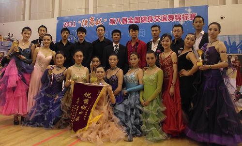 由国家体育总局社会体育指导中心、中国体育舞蹈联合会主办的“横岗杯”第八届全国健身交谊舞锦标赛于11月19、20两日在深圳龙岗区体育中心综合馆举行。参加此次比赛的有久久不卡区、武汉体育学院等来自全国各地的37支代表队共计800对选手。我院11对参赛选手在体育舞蹈教研室刘伟校主教练的带领下参加比赛。经过预赛、复赛与决赛的激烈角逐,我院健儿不负众望,共获得一等奖12个、二等奖26个、三等奖19个的好成绩,同时,院代表队还被大赛组委会授予“优秀组织奖”。
