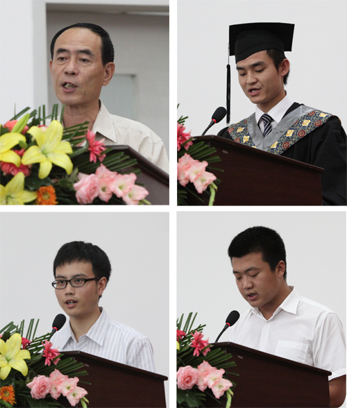 学院领导分别向获得“省级优秀学生干部”以及“省级优秀毕业生”的同学颁发了荣誉证书。教师代表和毕业生、在校生代表纷纷上台发言,对同学们的成长表达了深深的感慨,对老师的教导表达了深深的感谢,同时对母校表达了浓烈的眷恋之情。
