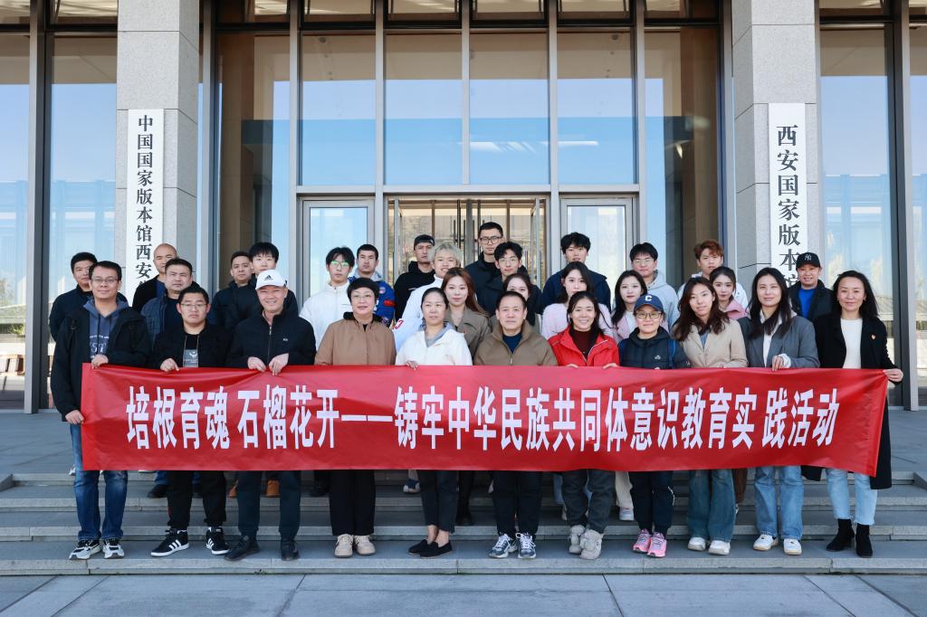 本网讯    为进一步贯彻落实落实中央民族工作会议精神,引导我校师生铸牢中华民族共同体意识,11月17日下午,校党委统战部组织各民族师生代表共40余人前往西安国家版本馆开展以“培根育魂 石榴花开”为主题的铸牢中华民族共同体意识主题教育实践活动。