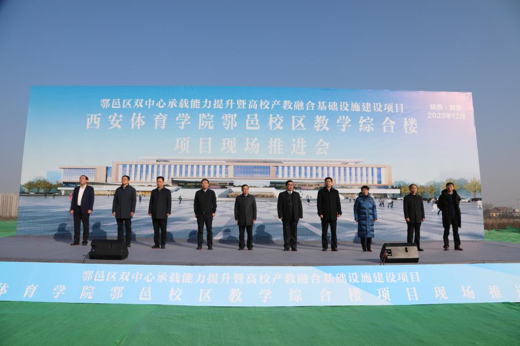 据悉,鄠邑校区教学综合楼项目总建筑面积为4.8万平方米,概算投资4.2亿元,是涵盖大学主要基本功能的标志性建筑,包括能够容纳图书100万册的现代化图书馆、100多间各类智能化教室、60余间现代化实验室以及教学配套的各类设施、学术报告厅以及教师工作室等各类功能的教辅用房。此项目开工是学校近70年办学发展史上的一件大事、喜事、好事,它承载着学校万名师生的梦想,是实现学校“五个强校”目标的务实之举,建成后将为实现到2035年把西体建成具有中国特色、国内领先、国际一流的应有研究型世界体育名校打下良好的硬件基础,将为更好服务体育强国、体育强省建设,促进地方经济社会发展、提升鄠邑区双中心承载能力、加强高校产教融合贡献更多“西体智慧”和“西体力量”!