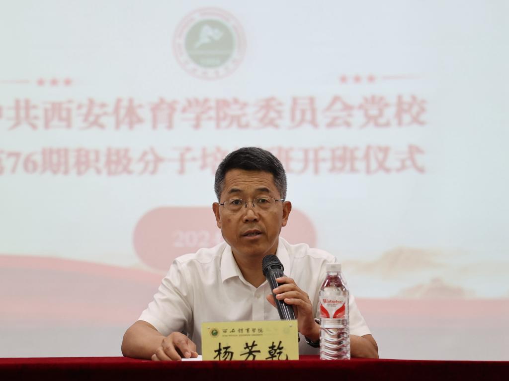 本网讯        为深入贯彻落实新时代党的建设总要求和新时代党的组织路线,切实做好入党积极分子的培养教育工作,充实党员队伍后备力量,严把发展党员“入口关”,6月17日,我校举行第76期入党积极分子培训班开班式暨首场专题报告。校党委副书记、纪委书记、监察专员杨芳乾出席并讲话,相关职能部门负责人、二级学院党组织书记、教职工入党积极分子和学生入党积极分子参加会议。