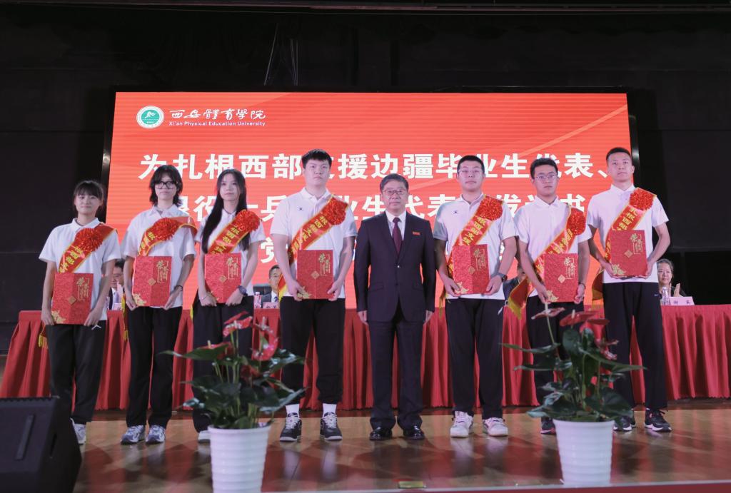 刘子实为扎根西部支援边疆及应征入伍、光荣退役毕业生代表颁发证书。