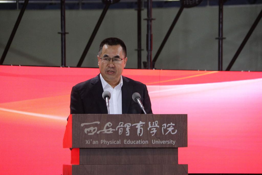 本网讯    10月9日下午,我校在鄠邑校区手球馆举行第四场杰出校友励志教育报告会。报告会邀请了我校78级杰出校友,东亚奥协主席、国家体育总局原党组副书记、副局长杨树安为师生作《变革的时代:世界体育发展趋势探讨——与母校学子交流分享》的精彩报告。报告会由校长李富生主持。教师代表及2024届全体新生2000余人到场聆听。
