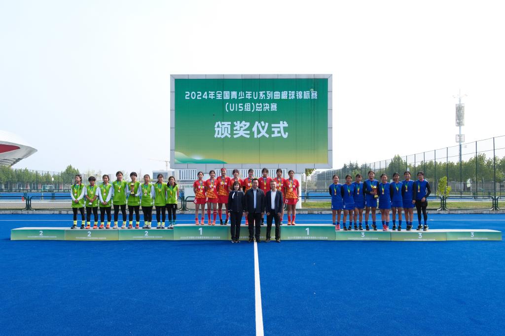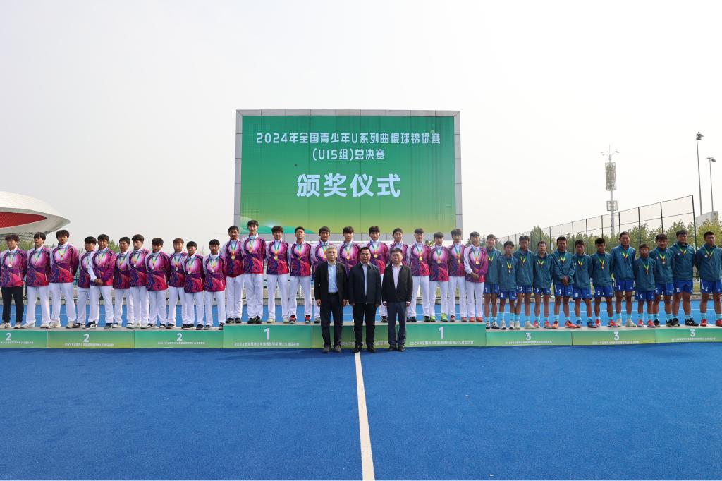 本网讯    10月18日,为期一周的2024年全国青少年曲棍球锦标赛U15组总决赛在我校鄠邑校区结束所有赛程,圆满闭幕。中国曲棍球协会副秘书长刘东伟、本次赛事技术代表兼裁判长蔡学梅,我校校长李富生、副校长张葆欣出席闭幕式并颁奖。