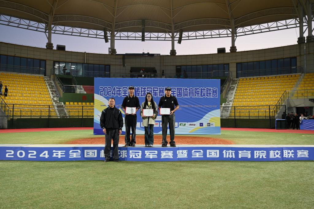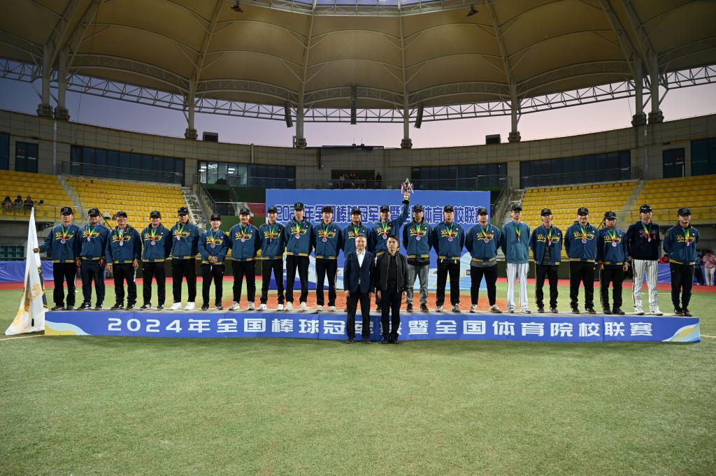 本网讯 10月27日,2024年全国棒球冠军赛暨全国体育院校联赛在我校鄠邑校区棒球场圆满闭幕。中国棒球协会技术委员会主委、赛事技术委员长高琦,中国棒球协会裁判员委员会执委、赛事裁判长刘军,校长李富生,副校长张葆欣,党委校长办公室主任张军,竞赛训练处处长许伟等出席闭幕仪式。