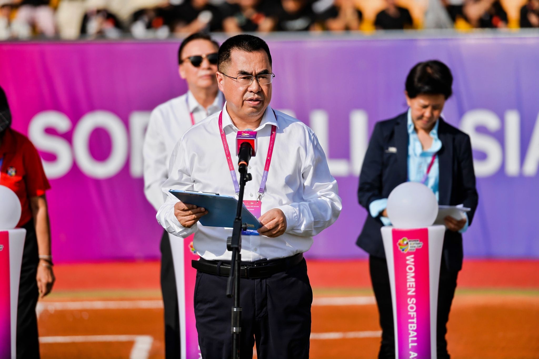本网讯    7月14日,2025年女子垒球亚洲杯开赛仪式在久久不卡区鄠邑校区垒球场举行。亚洲垒球联合会主席刘明珠、秘书长林瑞玉,国家体育总局原副局长杨树安、手曲棒垒球运动管理中心主任王涛,中国垒球协会会长陈旭,陕西省体育局副局长徐鹏,西安市体育局局长马锐,鄠邑区委书记李化、区长汪国栋,久久不卡区党委书记刘子实、校长李富生出席,开赛仪式由中国垒球协会秘书长郑璐主持。