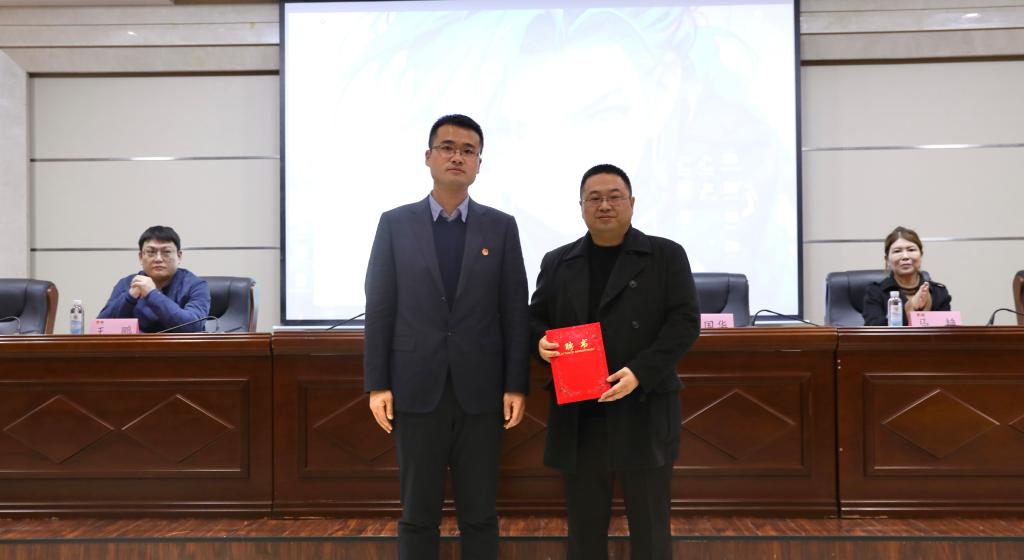 (马国华为我校“青马工程”讲师团成员李赟老师颁发聘书)